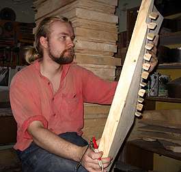 Мастерская. Заготовка крыловидных гуслей (Минск) Фотограф: М. Фролова (Минск). 2005 год.