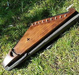 В нём осознанно выполнены типичные для старинных кантеле ponsi (окончание корпуса клювиком в области струнодержателя), ponnen lovi (скоба струнодержателя округлой формы) и kierukka