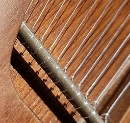 Струны: голые стальные, натяжение слабое. Металлические струны возможно стояли ещё на гуслях XI века, и наиболее подходят