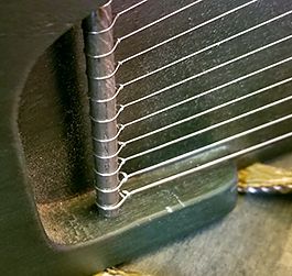 Струны: голые стальные, натяжение слабое. Металлические струны возможно стояли ещё на гуслях XI века, и наиболее подходят