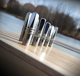 Колки: клён. Клён интересен как материал для колков тем, что волокна в нём невыраженные, он твёрдый, но в то же время поверхность клёна достаточно мягкая для того, чтобы колки великолепно подстроились под коническое колковое отверстие, плавно крутились и идеально держали строй.