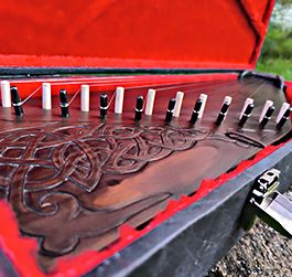 На окрылок нанесена резьба, характерная для произведений искусства Восточной Европы 12 века, в том числе и для археологических находок гуслей. Цвет и уникальныя резьба — делают вааш инструмент единственным и неповторимым.